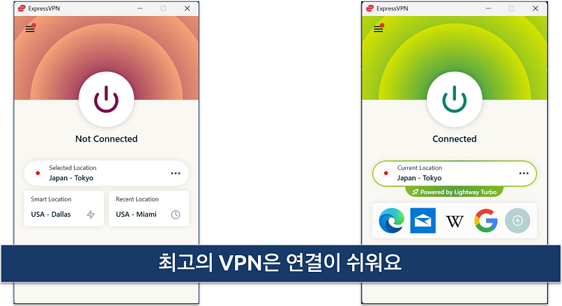 VPN 설치 파일이 안내하는 간단한 절차를 따라 몇 분 안에 설치를 완료할 수 있습니다. - 다른 국가 서버에 연결합니다.