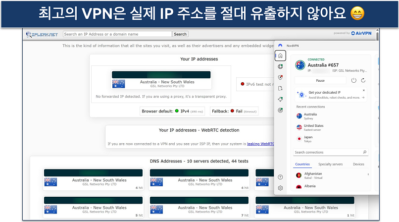 간단히 IP 확인 웹사이트를 방문하면 됩니다. 이는 ‘유출 테스트 도구’라고도 불리며, 방문하는 웹사이트에 어떤 IP 주소가 표시되는지를 보여줍니다. 선택한 방법에서 부여받은 IP와 일치하는지 확인하면 됩니다.