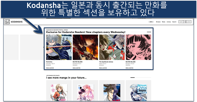 Kodansha는 만화 애호가들에게 보물상자로 여겨진다. 디지털 플랫폼을 통해 진격의 거인부터 카드캡터 체리까지, 강렬한 액션과 마법 모험물을 아울러 혁신적인 만화를 다양하게 구매해 즐길 수 있기 때문이다. 해당 시리즈는 고품질 번역과 일본 출간 일정과의 동기화로 유명하며, 이 덕분에 늘 최신 만화를 감상할 수 있다.